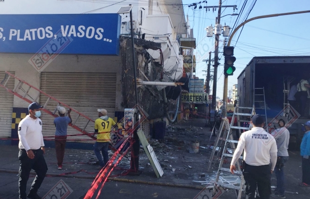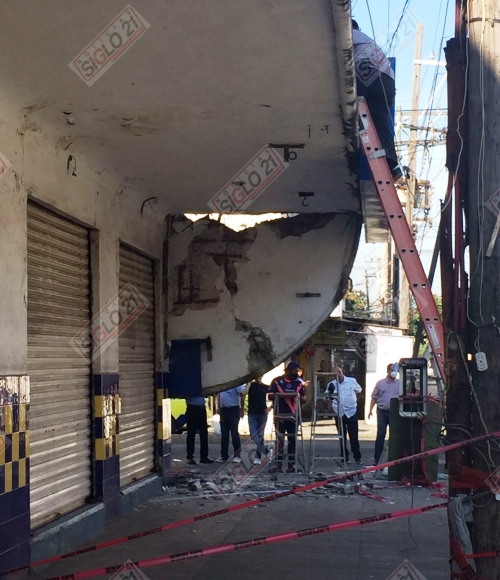 El edificio, que posiblemente data de mediados del siglo pasado, no habría soportado el peso del alero ubicado sobre la avenida Hidalgo, desplomándose el lado del alero ubicado sobre la avenida Hidalgo.