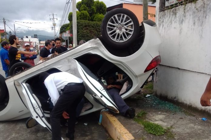 Los hechos ocurrieron en calle 4 y avenida 19 del fraccionamiento Alameda, en donde el auto volcó tras haber chocado con otro vehículo.