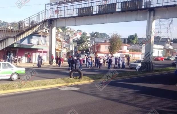 Xalapa, Ver.- Manifestantes han bloqueado parcialmente el Bulevar Xalapa-Banderilla, en el carril con rumbo a la capital del Estado, esto a la altura de la colonia 21 de Marzo.