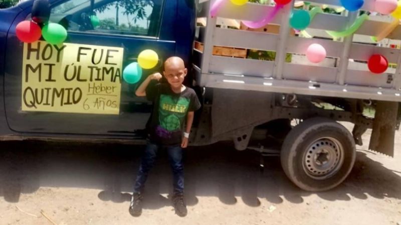 Su última quimioterapia la celebró con globos y pancartas colocadas en la camioneta que hizo una caravana en su honor en Torreón, Coahuila.