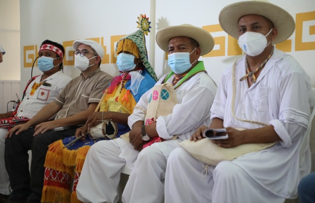 Eran las 12:00 horas de este 14 de julio de 2021 cuando se escucharon los sones tradicionales de los Voladores Tennek de San Luis Potosí y sones de Voladores Tutunaku de Papantla, con los cuales dieron apertura al diálogo entre hermanos, guardianes y portadores de esta ancestral ceremonia.