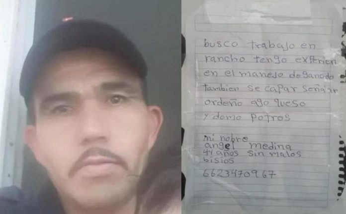 En medio de la búsqueda de empleo, Ángel decidió elaborar su CV con hojas de papel que colgó en varios espacios públicos de la ciudad de Hermosillo, escribiendo allí las actividades que podía desempeñar, así como su medio de contacto.