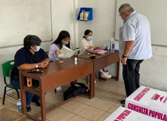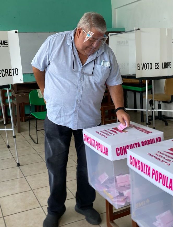 Desde la casilla instalada en la Escuela Primaria Luis Hidalgo Monroy emitió el voto que se sumará a la decisión del pueblo para llevar ante la justicia a los expresidentes que traicionaron la confianza del pueblo.