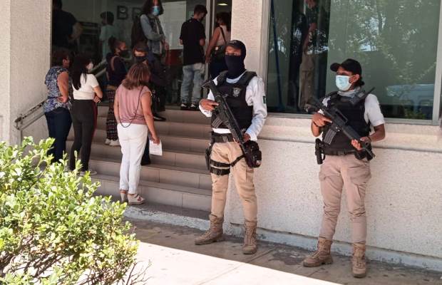 Fue minutos después de las dos y media de esta tarde que los presuntos delincuentes se introdujeron a la sucursal, para llegar hasta el área de ventanillas, amenazando a una cajera a la que lograron les entregara una cantidad que se habría estimado hasta en 220 mil pesos.