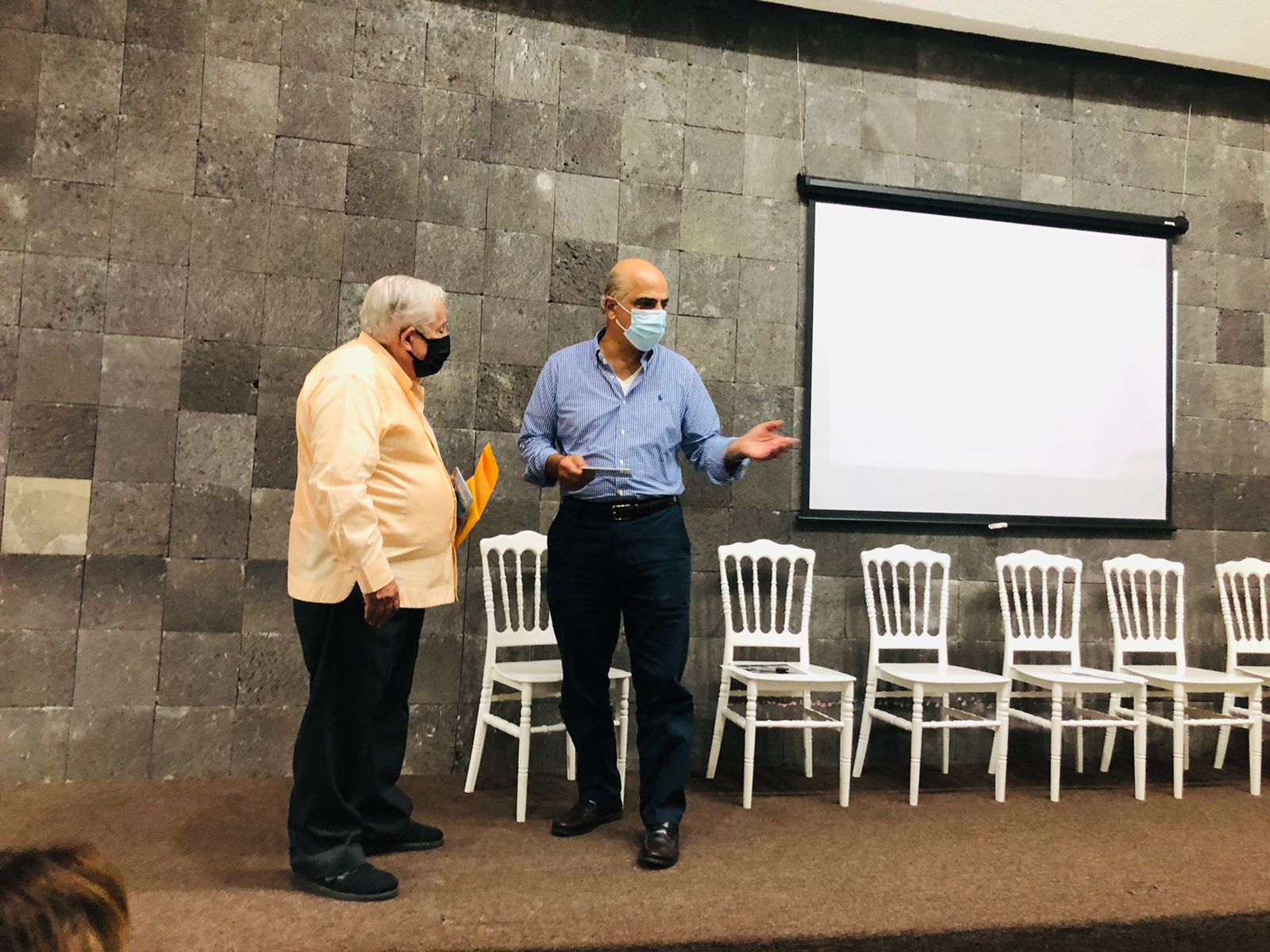 El alcalde electo de Xalapa, Ricardo Ahued Bardahuil recibió del arpista y compositor Alberto de la Rosa el álbum “Todo Veracruz es Bello”.