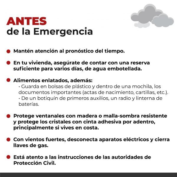 La Secretaría de Protección Civil del Estado de Veracruz invita a la ciudadanía a estar preparados ante la llegada del huracán Grace a costas del estado.