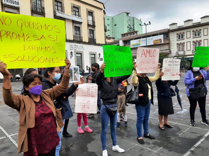 Xalapa, Ver.- La mañana de este lunes, familias de la colonia 21 de marzo, dónde una familia completa falleció, se manifestaron frente a palacio de gobierno, para exigir obras de de drenaje, ductos de agua pluvial, además de pavimentación y muros de contención.