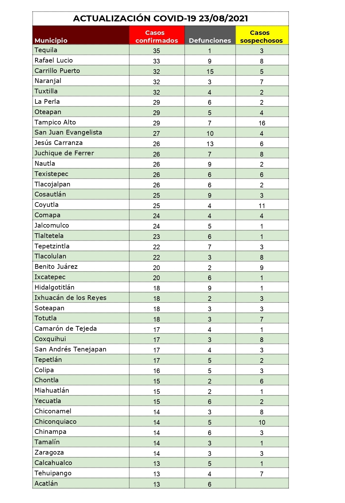Xalapa, Ver.- Al corte de las 19:00 horas, la Secretaría de Salud (SS) reporta que son 97 mil 603 (+ 454 nuevos) los casos confirmados de COVID-19 en la entidad, de 210 mil 523 eventos analizados.