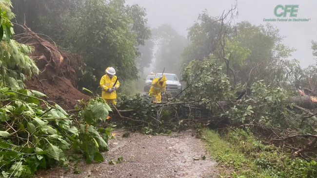 La CFE a través del Sistema Nacional de Protección Civil, se mantiene en estrecha coordinación con la Secretaría de la Defensa Nacional, la Secretaría de Marina, Comisión Nacional del Agua, Secretaría de Salud, gobiernos estatales y municipales, para la atención de esta contingencia.