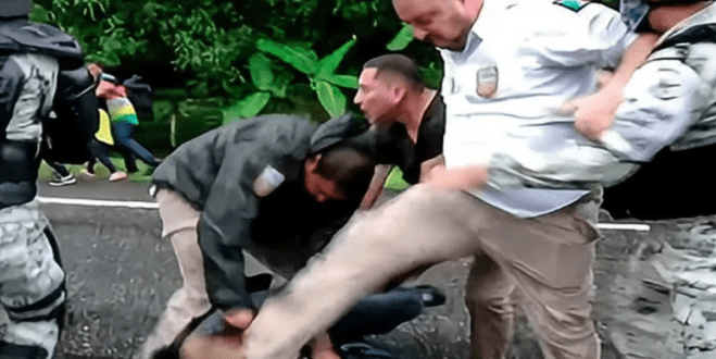Un agente mexicano fue el protagonista de una fuerte agresión contra un migrante en Chiapas, en el sur de México, en medio del “muro” que los mismos agentes fronterizos realizaron para detener una caravana migrante que buscaba cruzar el país para llegar a la otra frontera, en el norte, con Estados Unidos.