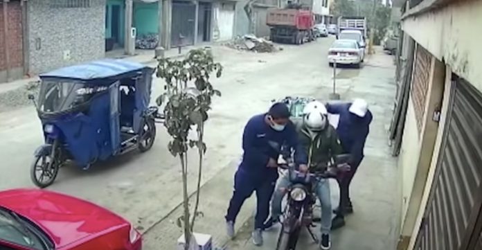 ¡Increíble! Lanzan costal de cemento para impedir asalto a motociclista