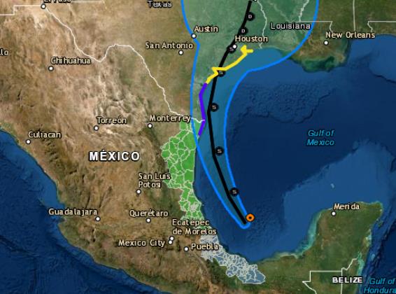 El organismo, dependiente de la Secretaría de Protección Civil, informó este medio día de domingo que se emitió una advertencia y avisos por tormenta para costas del noreste de México y Texas