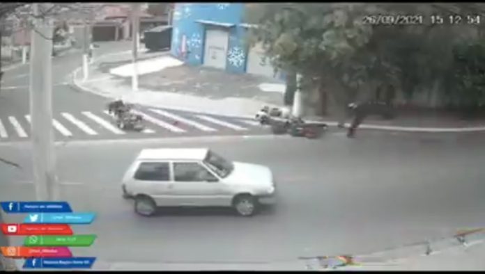 En redes sociales circula un video, captado por cámaras de seguridad, que muestra a dos hombres a bordo de una motocicleta interceptar y amenazar con un arma a un tercero, quien también viajaba en moto.
