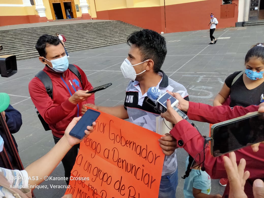 Xalapa, Ver.- El motociclista repartidor Jorge Iván Rivera Santamaría se manifestó en la plaza Sebastián Lerdo para solicitar al gobernador de Veracruz, Cuitláhuac García Jiménez que interceda ante la secretaría de Seguridad Pública (SSP) luego de que los policías le quitaron su motocicleta en un supuesto operativo llamado “Fénix”.