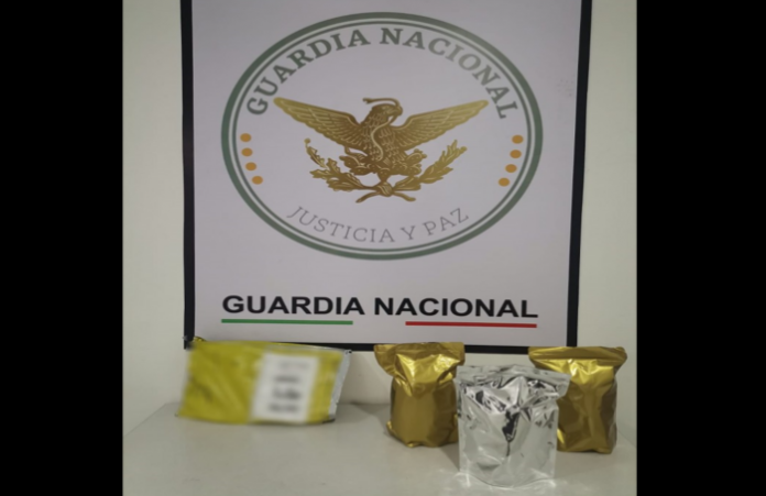 La Guardia Nacional informó que el aseguramiento de las bolsas metalizadas conteniendo el aparente enervante fue posible por el apoyo de un ejemplar canino llamado “Pantera, al que le llamó la atención un paquete, manifestando una alerta seguida de una indicación positiva a uno de los aromas para el cual fue entrenado.