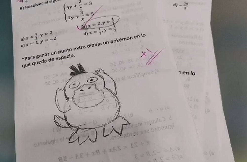 Seguramente los alumnos se sorprendieron al leer en la prueba las instrucciones de la última pregunta: «Para ganar un punto extra, dibuja un Pokémon en lo que queda de espacio«.