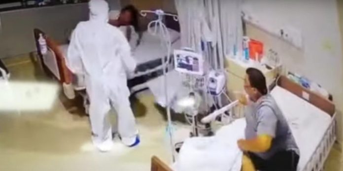 El médico procedía a revisar a una paciente infectada con Covid-19, al momento de retirar la cortina de separación, esta grita al ver al un “fantasma”, espantando incluso a la persona en la cama de al lado.
