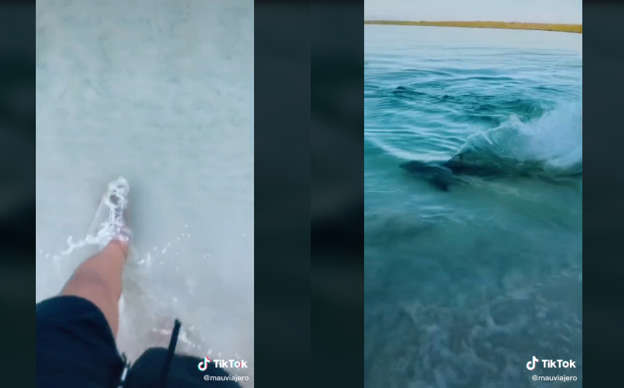 Pero también buscan darse un baño en sus playas,este usuario de TikTok documentó cómo tras caminar 4 kilómetros buscaba sumergirse en la playa, pero inmediatamente al poner su pie en el agua se percató que algo se movió rápidamente en el agua.