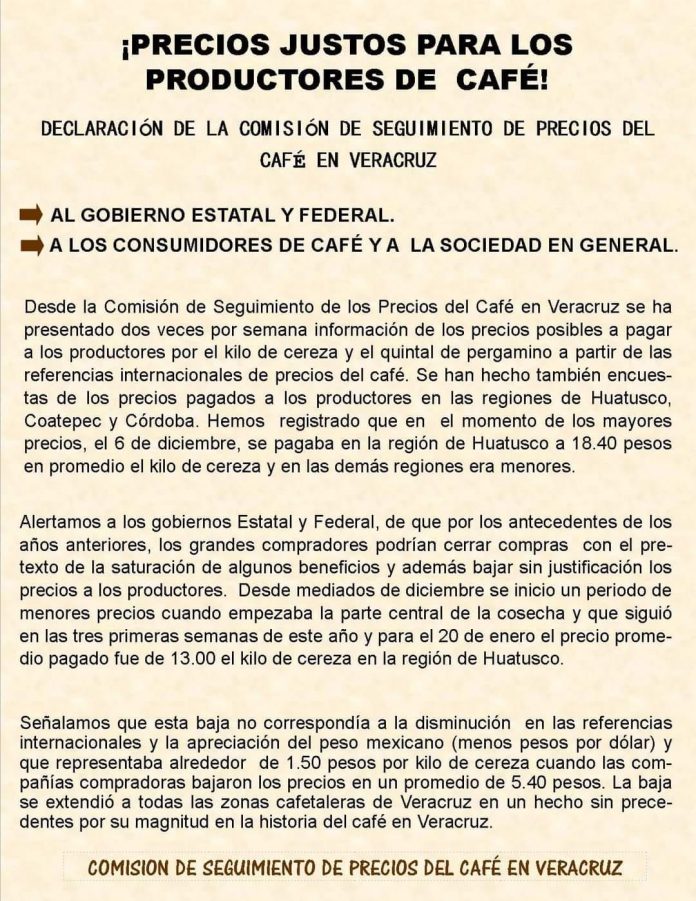 Asimismo, dijeron que es preocupante la actitud provocadora de la empresa hacia los cafetaleros, además de que actúan con impunidad sin aceptar las demandas del sector productor.