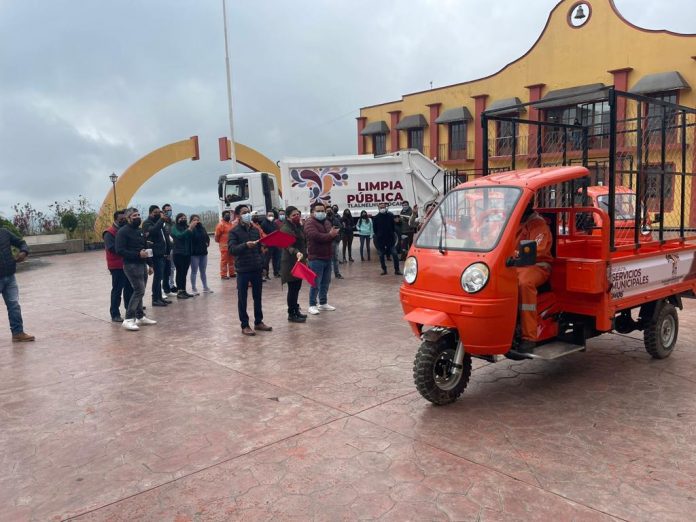 Tlalnelhuayocan, Ver., 28 enero 2022.- El Ayuntamiento de Tlalnelhuayocan refrenda su compromiso con sus habitantes y este día se dio el banderazo de salida para que operen de manera normal el camión de la basura y tres motos de recolección.