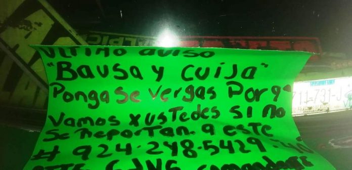 A la unidad rafagueada le colgaron una cartulina fosforecente, en la que se leían mensajes amenazantes contra dos personas referidas mediante apodos.