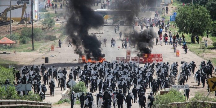 En ese hecho, los agentes de seguridad pública federal y estatal dispararon contra civiles que mantenían bloqueada la carretera federal para exigir la liberación de los dirigentes de la Sección 22 del Sindicato Nacional de Trabajadores de la Educación (SNTE) y para protestar contra la reforma educativa del expresidente Enrique Peña Nieto.