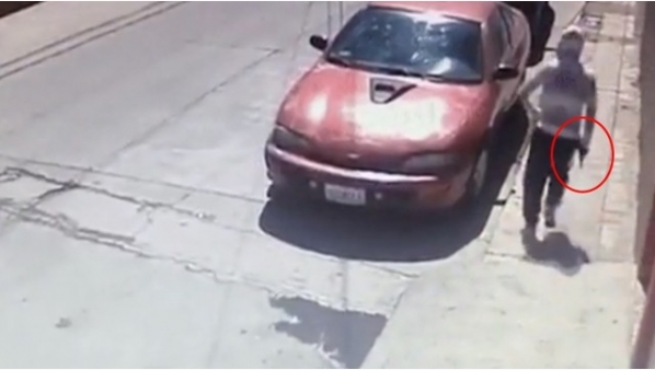 El video muestra el momento en que Toledo llega al inmueble donde trabajaba y al mismo tiempo llegan dos sujetos. Los agresores abordan al periodista e intercambian palabras con él.