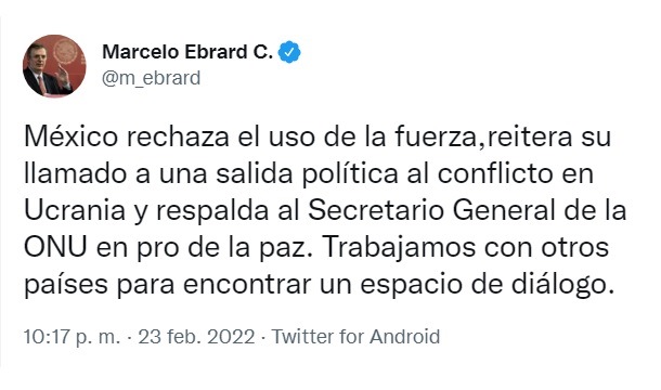 — Marcelo Ebrard C. (@m_ebrard) February 24, 2022