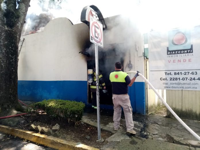 Xalapa, Ver.- Esta tarde se registró un incendio en un local de bebidas ubicado sobre la Av. Américas de la capital del estado, las llamas fueron reportadas por vecinos al número de emergencias 911.