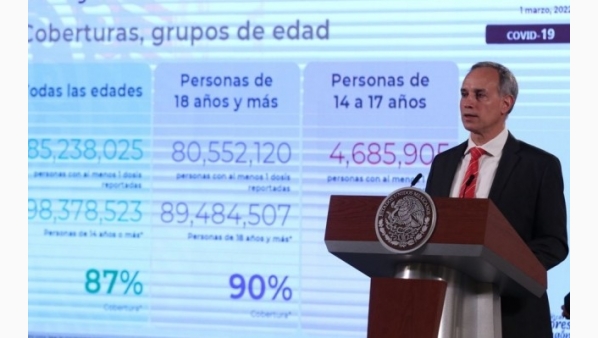 López-Gatell dio a conocer que hasta la fecha se han aplicado 182 millones de dosis contra covid-19 en 85 millones de personas, de las cuales el 93 por ciento de ellas tiene su esquema completo.