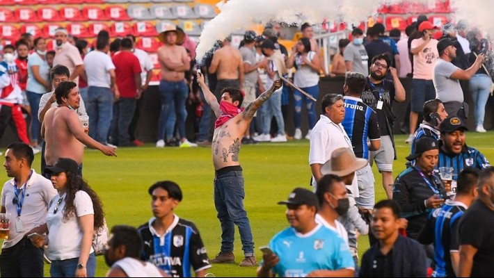 El conflicto se extendió al campo de juego, obligando al arbitro a suspender el partido y a seguridad del estadio a intervenir. A pesar de ello los agentes se vieron superados en número y las autoridades de Protección Civil de Querétaro tuvieron que ser llamadas.