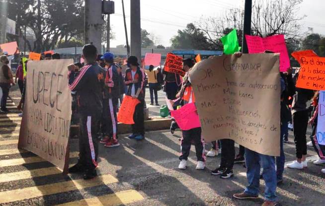 Xalapa, Ver.- La mañana de este jueves, padres de familia y alumnos de la escuela Telesecundaria Práctica Anexa a la Escuela Normal Veracruzana Manuel Suárez Trujillo bloquearon la vialidad en el boulevard Xalapa-Banderilla en demanda de la asignación de clave para este plantel y la regularización del terreno donde se ubica.