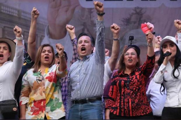 Xalapa, Ver.- Cuitláhuac García y Rocío Nahle se sumaron a los más de 10 mil ciudadanos que acudieron a la Plaza Lerdo para expresar su apoyo al presidente López Obrador pues «Amor con Amor se paga».