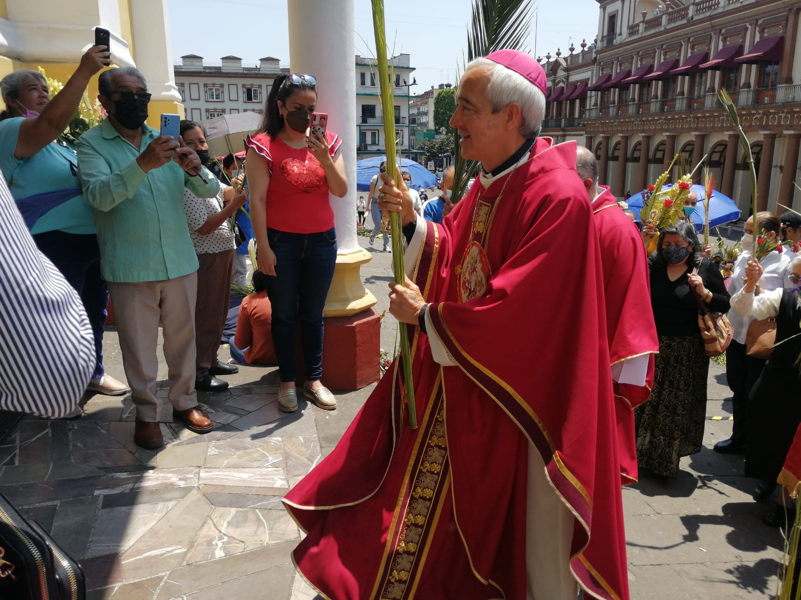 Xalapa, Ver.- Arzobispo de Xalapa, Jorge Carlos Patrón Wong, bendijo este Domingo de Ramos las palmas de decenas de feligreses que acudieron a la Catedral Metropolitana como parte de la Semana Santa.