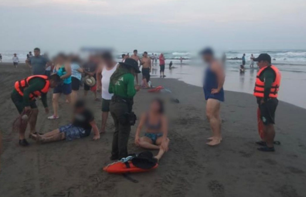 Úrsulo Galván, Ver., 13 de abril de 2022.- Agentes de la Compañía Marítima de Fuerza Civil, rescataron a una mujer y dos menores de edad que, debido al oleaje, fueron arrastrados mar adentro, en playas del municipio de Úrsulo Galván.