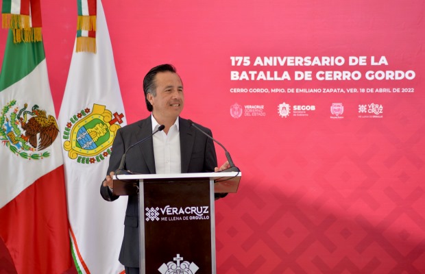 Emiliano Zapata, Ver.- Al encabezar la ceremonia por el 175 aniversario de la Batalla de Cerro Gordo, el gobernador Cuitláhuac García Jiménez anunció el proyecto de erigir una bandera monumental en esta localidad, para que la gente recuerde el hecho histórico donde, en 1847, el Ejército Mexicano defendió la soberanía combatiendo a las fuerzas estadounidenses.