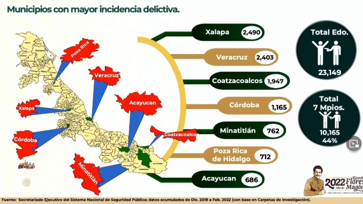 Destacó que los municipios donde hay una mayor incidencia delictiva son Xalapa, Veracruz, Coatzacoalcos, Córdoba, Minatitlán, Poza Rica y Acayucan.