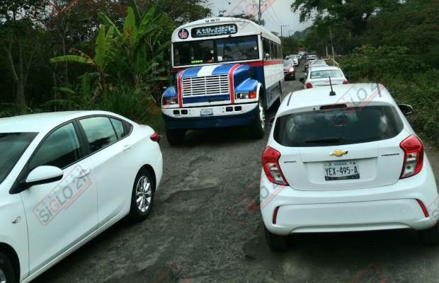 Conductores de camiones de pasaje, taxis, unidades de carga y todo tipo de autos particulares desesperan por el lento avance para cruzar por la citada localidad.