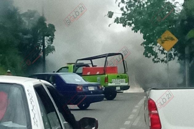 Fue minutos antes de las 3:00 de la tarde cuando vecinos de la avenida Camino a las Haciendas reportaron una fuerte presencia de humo, posteriormente se sabría que se trata de un auto que está ardiendo en llamas.