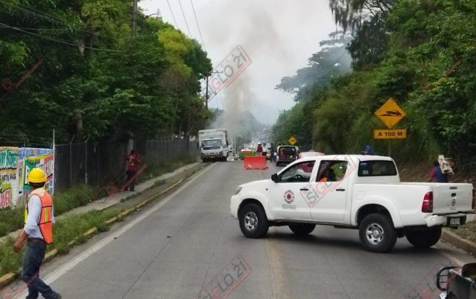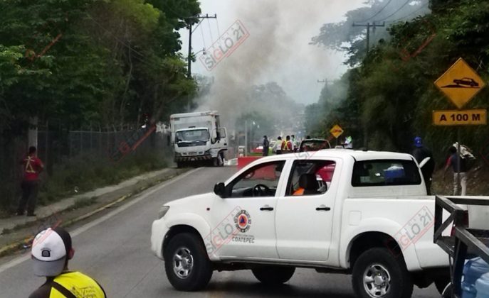 Coatepec, Ver.- El incendio de un camión repartidor de refrescos en un local ubicado en la carretera camino a las haciendas a alarmado a vecinos en esta tarde.