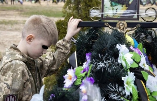 La tumba de detrás de Tarash es la de otro soldado fallecido, Sergei. Su esposa tiene 30 años y un niño de dos que no para de corretear. “Estoy viva por él. Él es el motor que guía mi vida, hay que seguir”, explica Olha. Cerca de ella lloran desconsoladas las dos hijas de Sergei, de un anterior matrimonio.