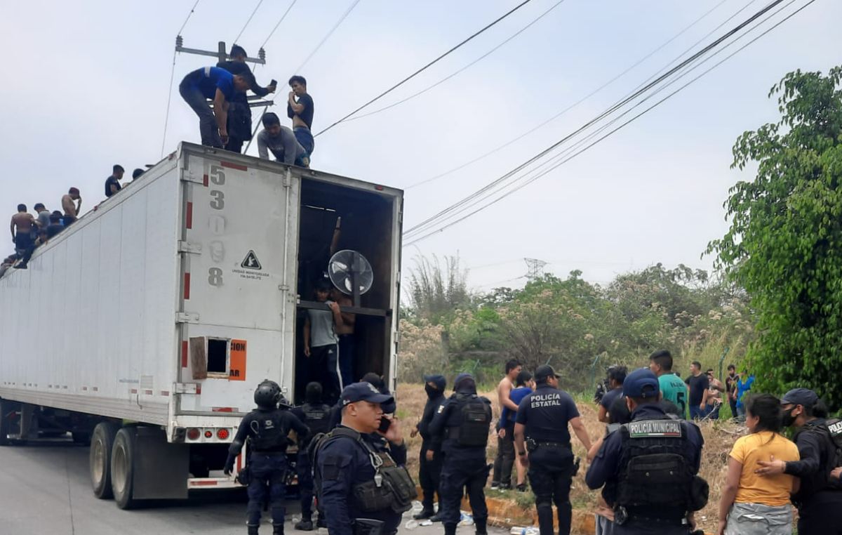 Los viajeros estaban dentro y fuera de un tractocamión blanco antes de ser hallados por la Secretaría de Seguridad Pública a través de elementos de la Policía Estatal.