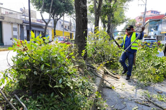 Durante las labores que se extenderán hasta las 13:30 horas de este viernes, se retirarán ejemplares dañados o muertos, se realizarán podas de seguridad, levantamiento de copas, liberación de luminarias y podas fitosanitarias; todo ello, previa valoración ambiental y justificación técnica.