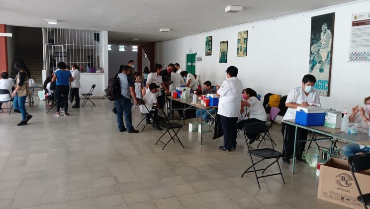 Coatepec, Ver. (SANDY BARRADAS).- Este mediodía se registra buena afluencia en el Gimnasio Coatepec en la jornada de vacunación antiCovid para menores de 12 a 14 años.