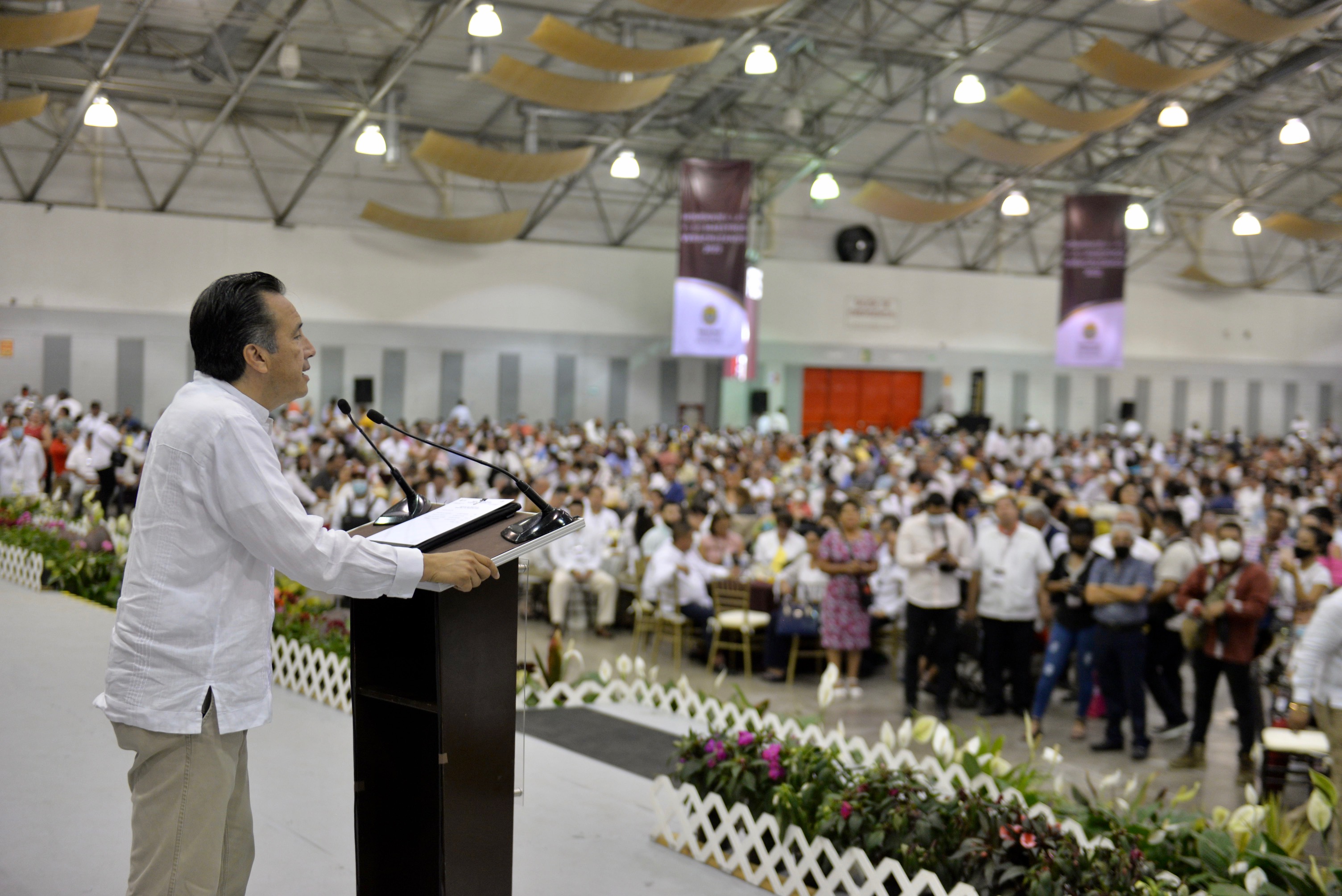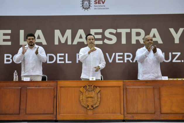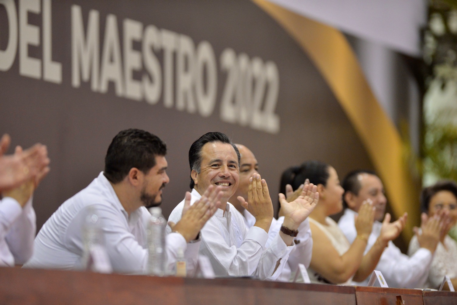 Boca del Río, Ver.- Durante el festejo del Día de la Maestra y el Maestro, el gobernador Cuitláhuac García Jiménez se congratuló de las acciones emprendidas por la Federación para enaltecer el papel del magisterio, luego de una época en que se quiso denigrar tan importante labor.