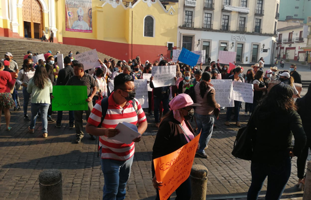 Xalapa, Ver. (Enrique Yasser Pompeyo).- Habitantes del municipio de Tlacolulan se manifestaron este miércoles en la avenida Enríquez de Xalapa frente a Palacio de Gobierno para exigir la construcción de cinco aulas para la escuela primaria Juana Pavón.