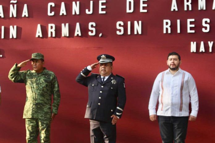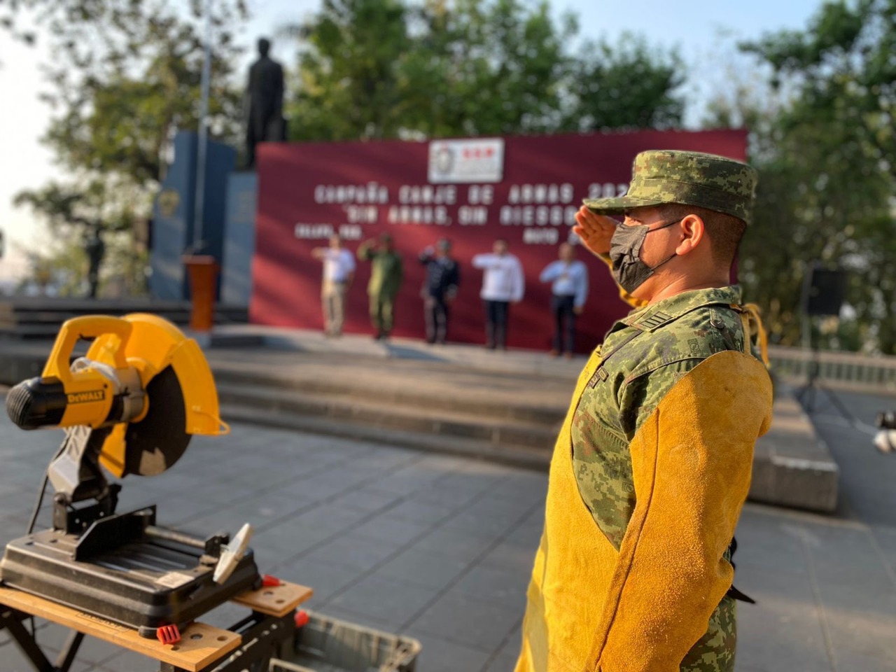 Xalapa, Ver.- Esta mañana, en coordinación con la Secretaría de la Defensa Nacional y autoridades municipales, se realizaron las ceremonias de inicio de la Campaña Estatal de Canje de Armas, en los municipios de Xalapa y Coatzacoalcos.