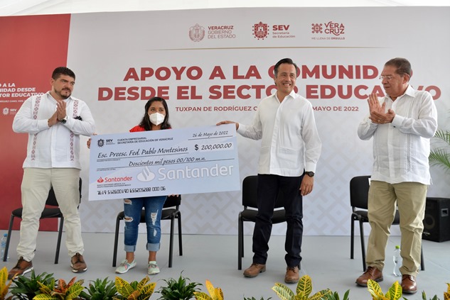 Previamente, en Tuxpan, el Gobernador entregó 15.2 millones de pesos a 76 escuelas afectadas por el huracán Grace; aquí agradeció a la Secretaría de Educación Pública porque este año Veracruz recibió mil 400 millones para rehabilitación, anunciando que en 2023 llegarán 3 mil 400 más y así los 24 mil planteles de la entidad habrán recibido apoyo en esta gestión.