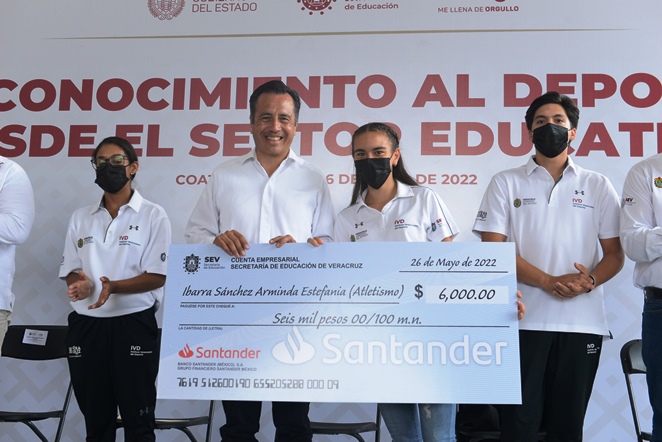 A su vez, el titular de la Secretaría de Educación de Veracruz (SEV), Zenyazen Escobar García, expresó que los recursos otorgados a los 942 atletas son ahorros que antes se robaban, hoy manejados de manera transparente por la Oficialía Mayor a cargo de Ariadna Selene Aguilar Amaya.