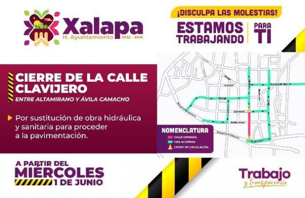 Este miércoles inicia reconstrucción de la calle Clavijero en Xalapa